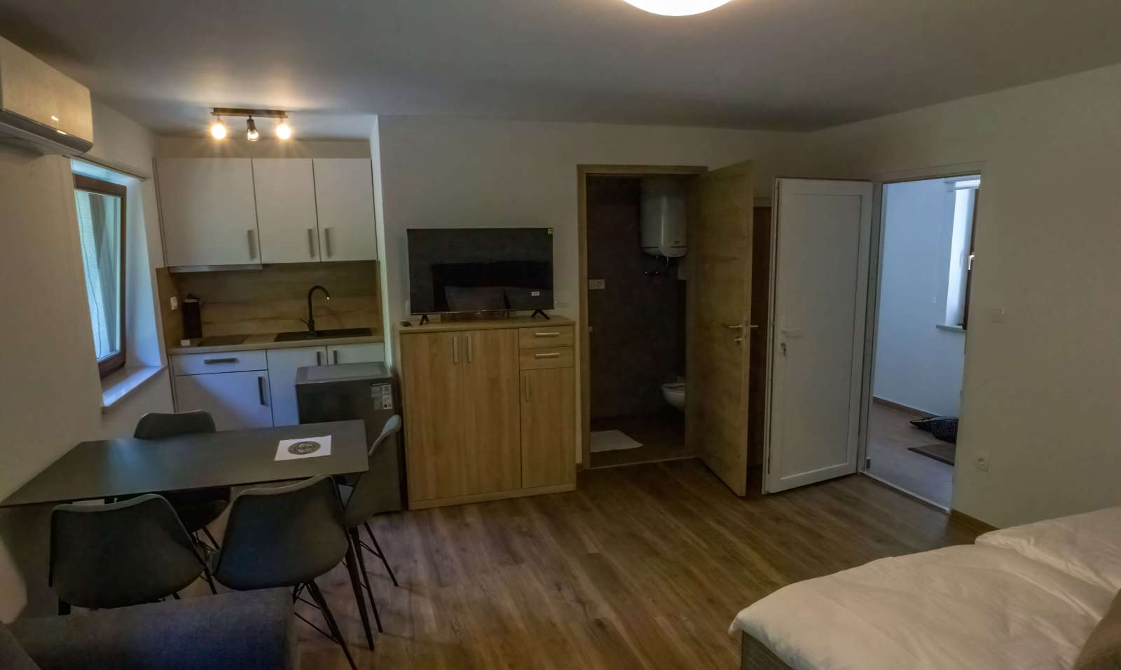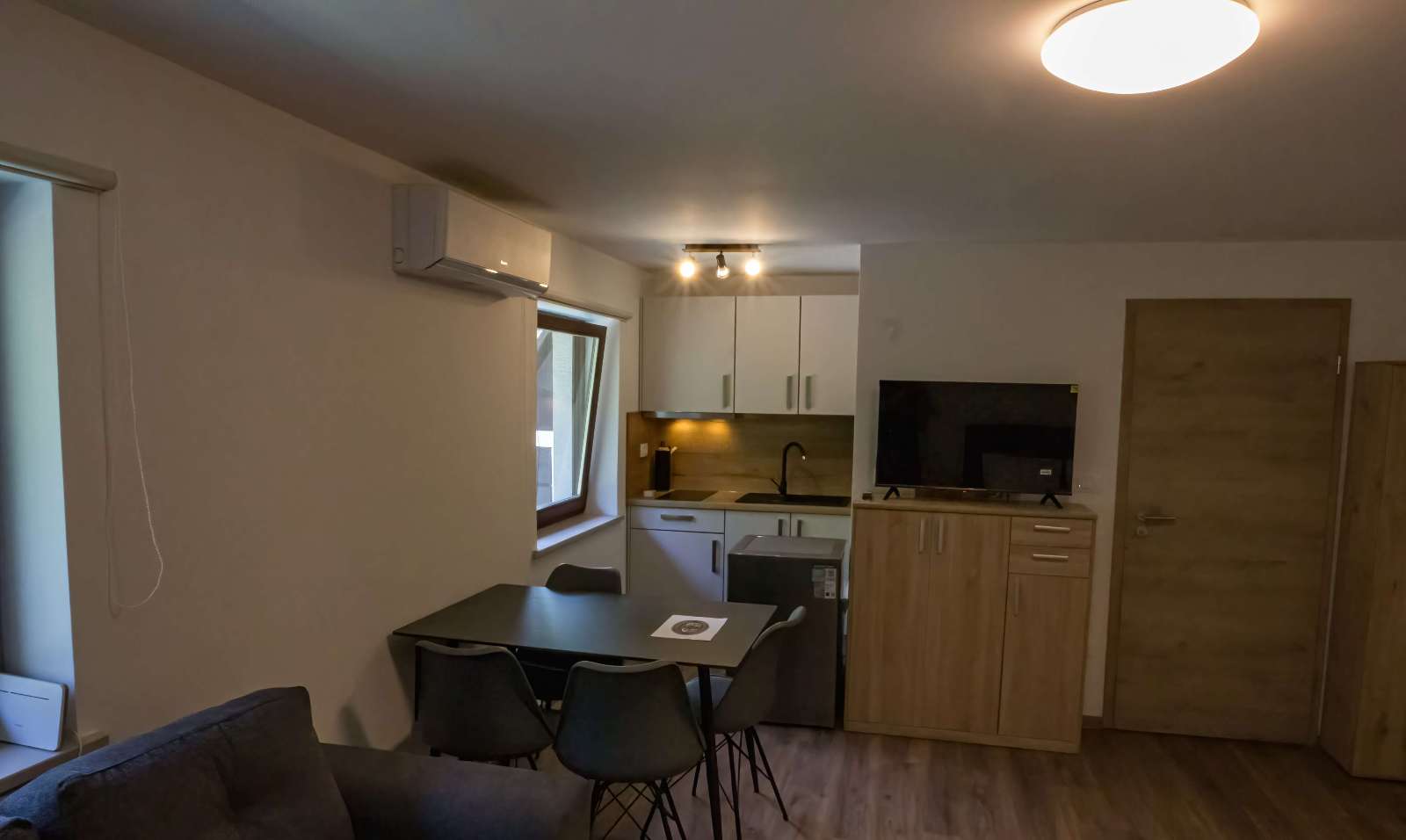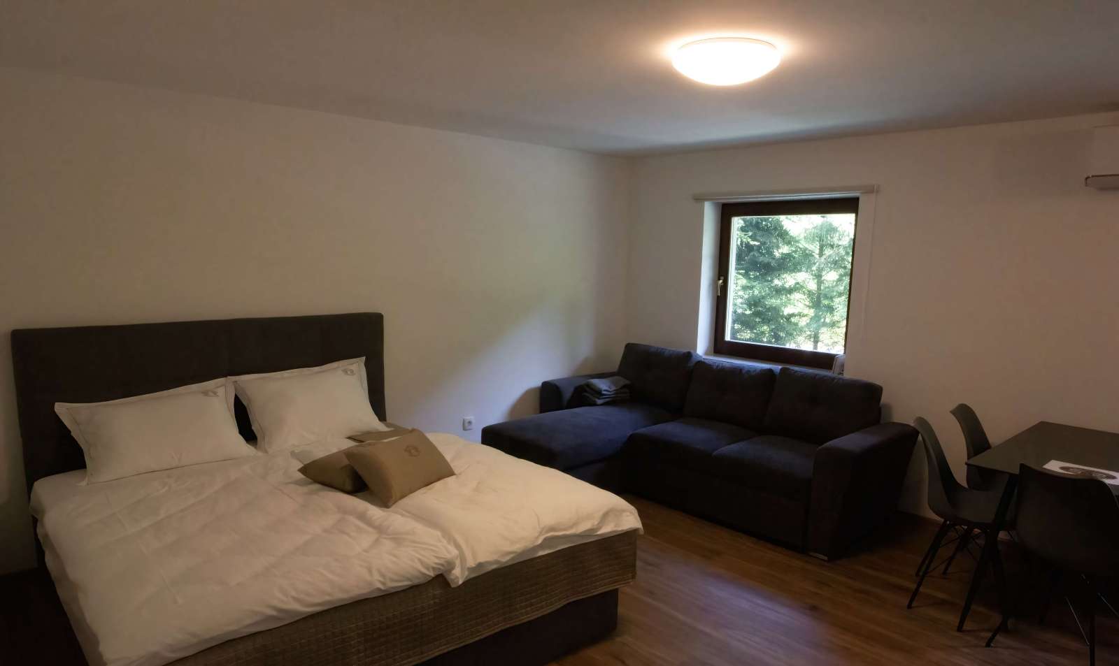 Apartma št. 2 v velikosti 27 m2 ponuja polno opremljeno nastanitev v neokrnjeni naravi.